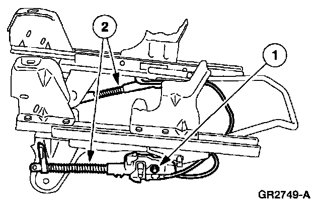 2 Disconnect the outboard end of the seat back recliner link cable.