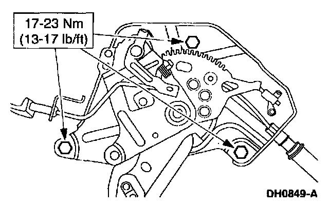 2 Insert a 4 mm (5/32 inch) drill bit or equivalent retainer in the parking brake control.