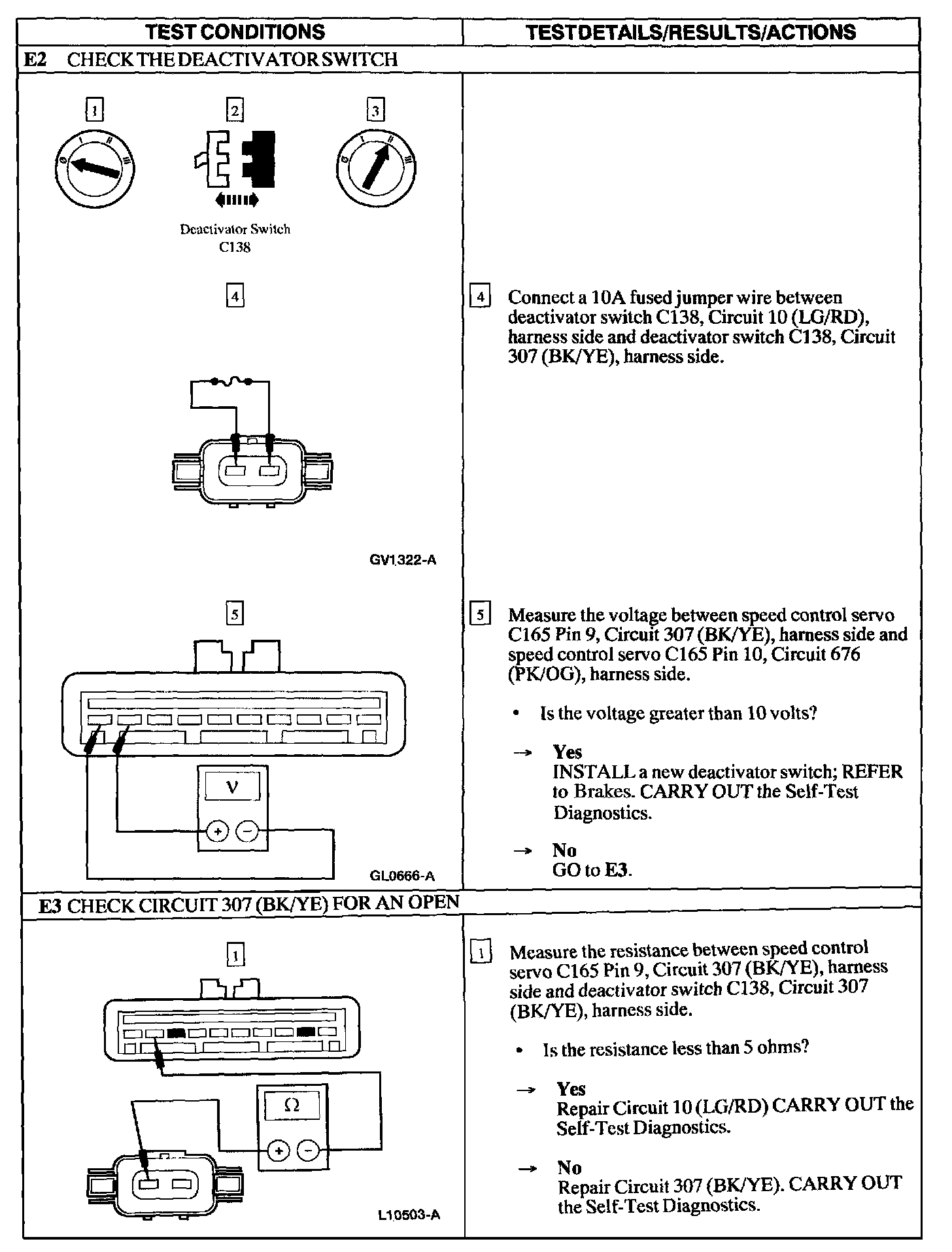 Test E: Flash Code 3 - Deactivator Switch Circuit Failure
