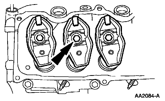 9. Loosen the bolt for the rocker arm at the number three cylinder intake valve.