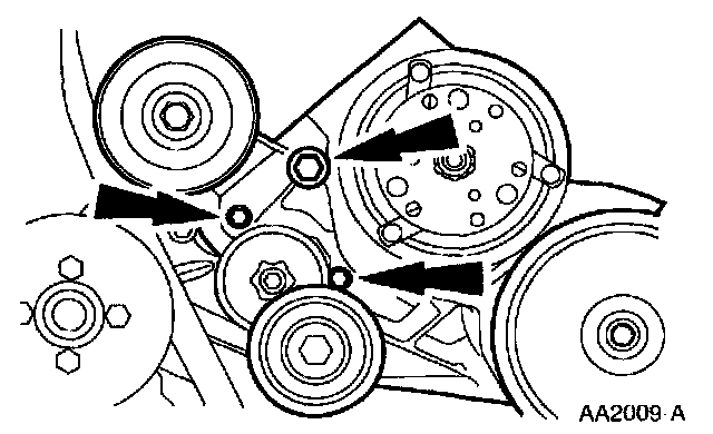 7. Remove the bolts from the A/C compressor mounting bracket.