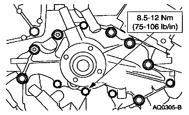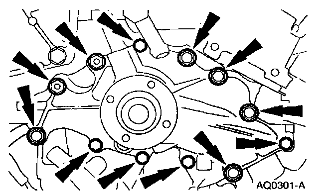 10. Remove the bolts and remove the water pump.