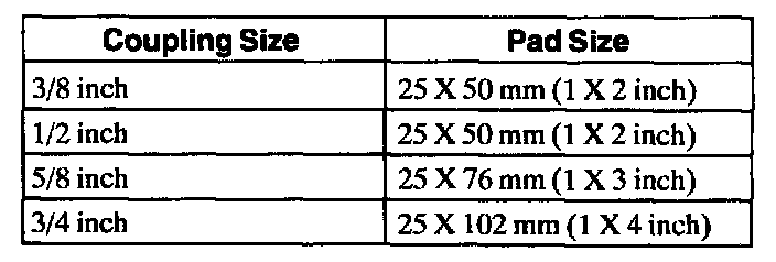 2. Cut an abrasive pad from maroon colored 3M Scotch Brite(R) with the dimensions corresponding to the coupling size.