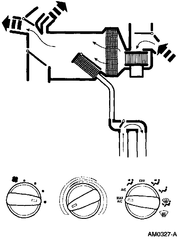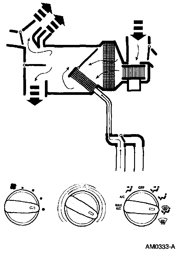 ^ The temperature can be adjusted to mix air flowing through and around the heater core to achieve the desired temperature level.