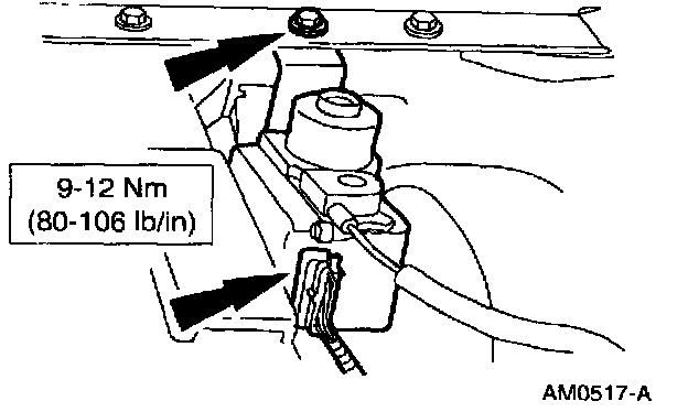 13. Install the A/C vacuum reservoir tank and bracket.