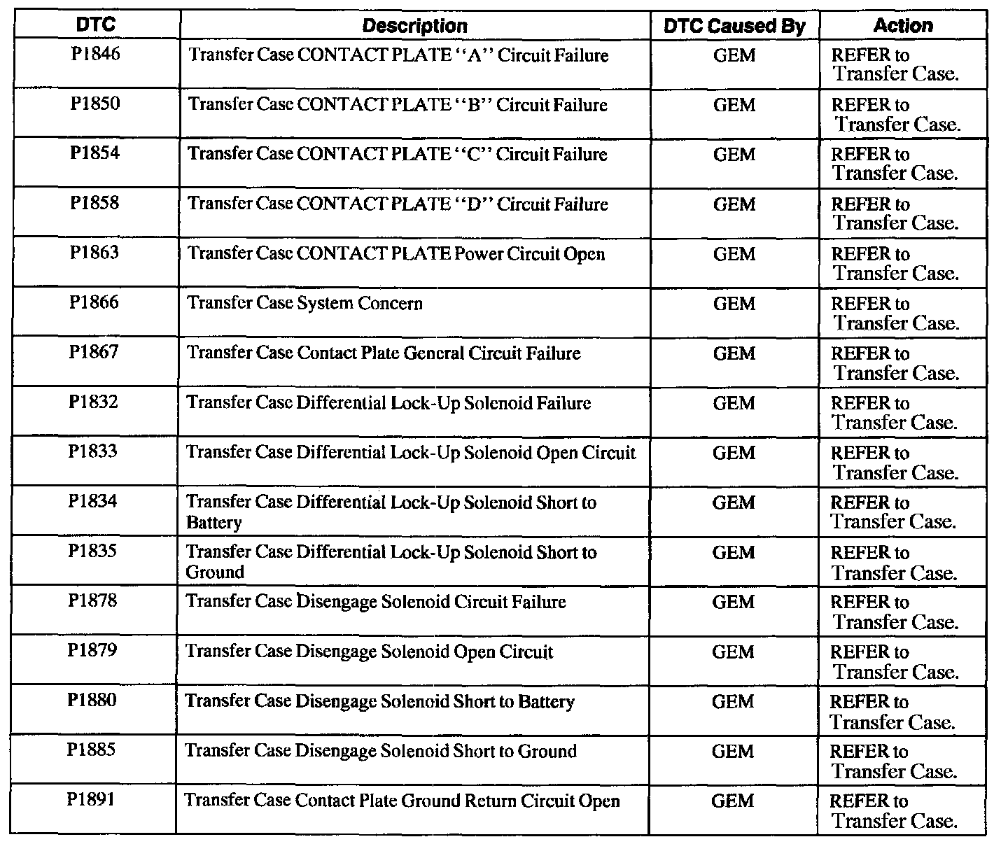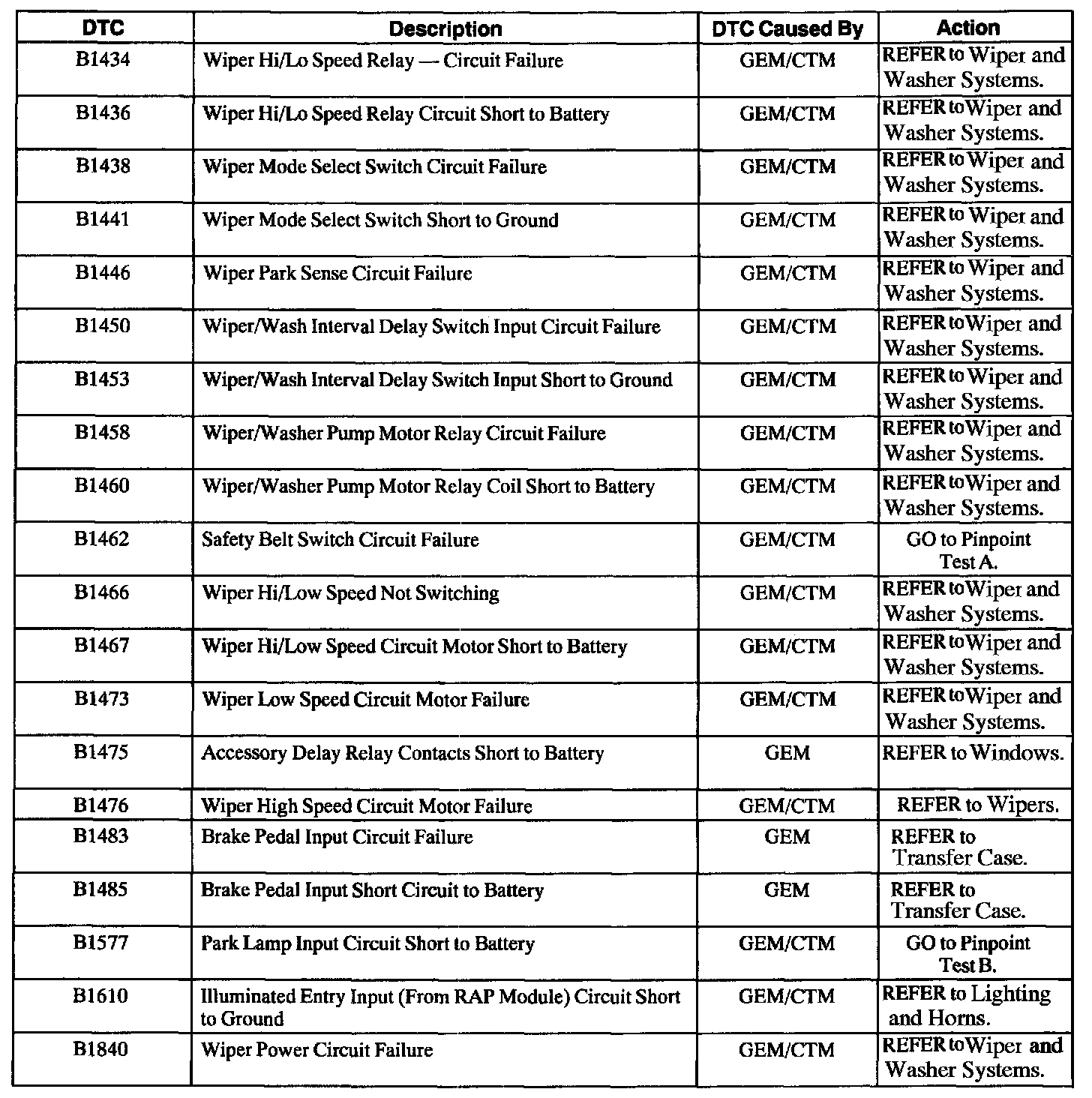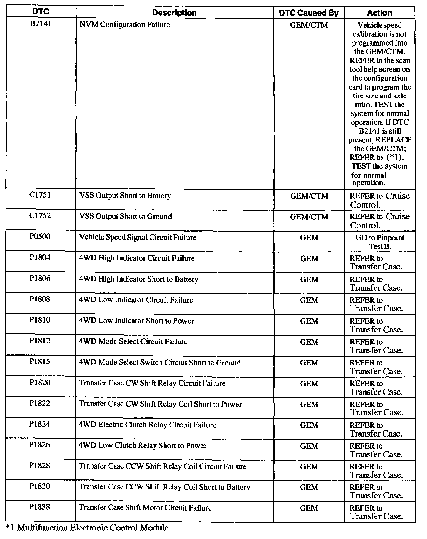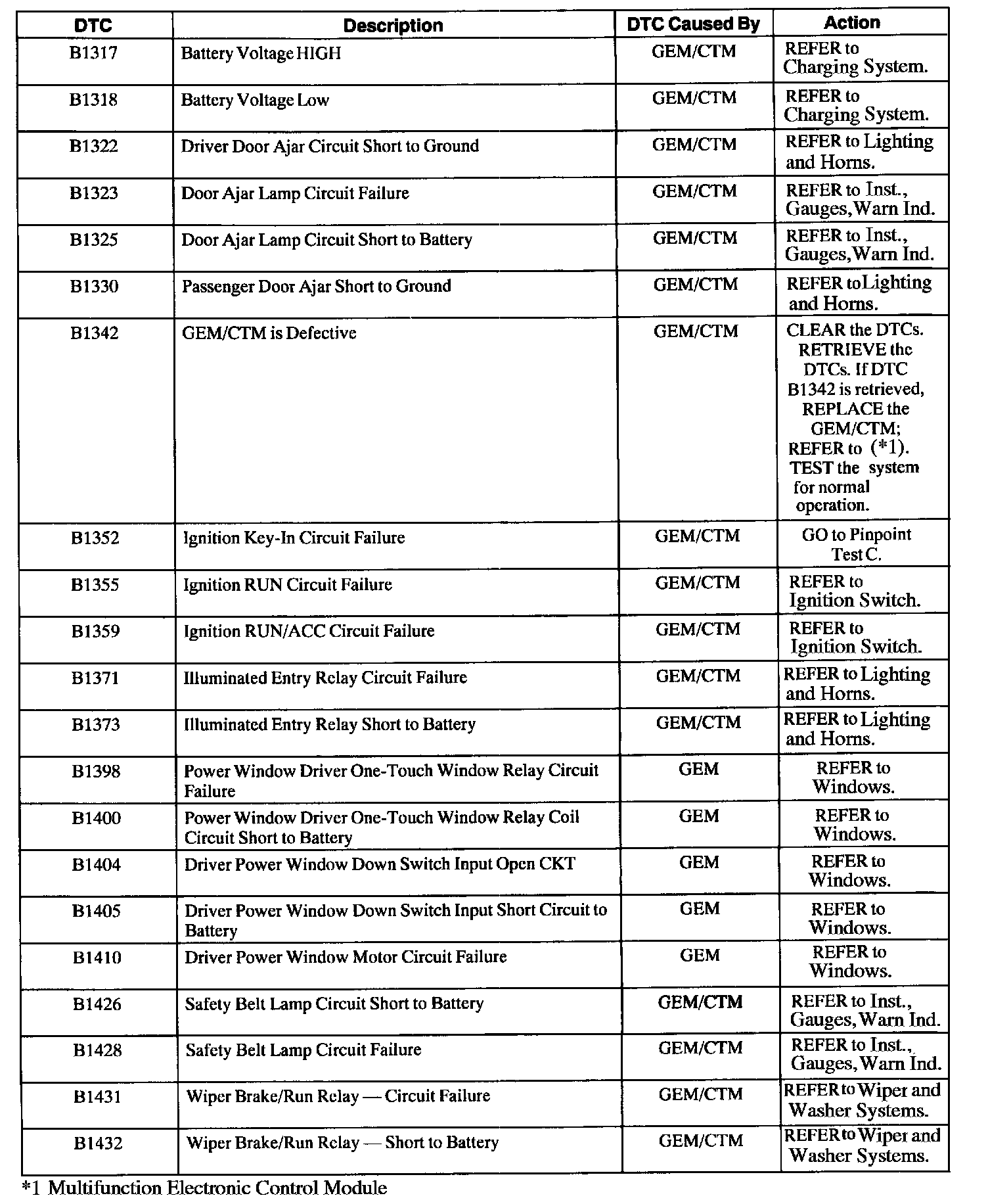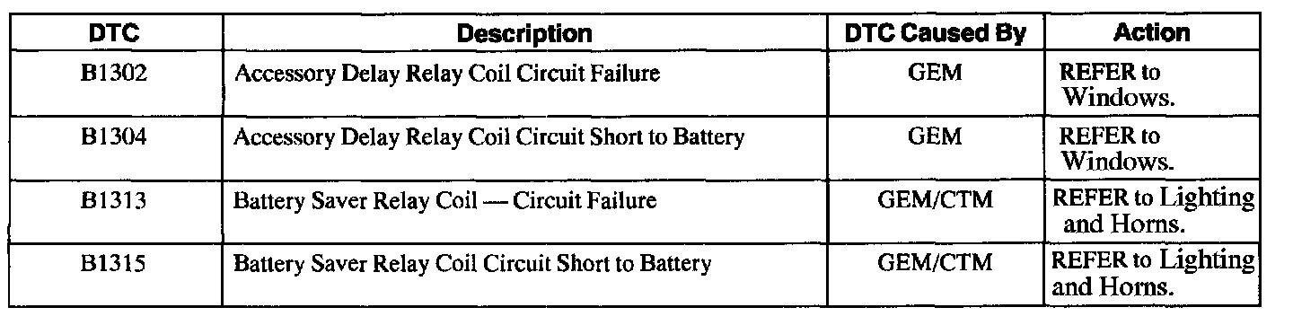 GEM/CTM Diagnostic Trouble Code (DTC) Index