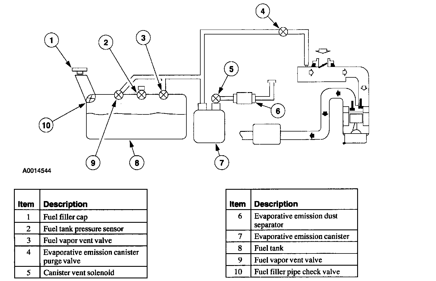 The fuel filler pipe check valve is an integral part of the fuel tank or the fuel filler pipe. It is intended to prevent liquid fuel from re-entering the fuel filler pipe from the fuel tank on refueling or rollover conditions.