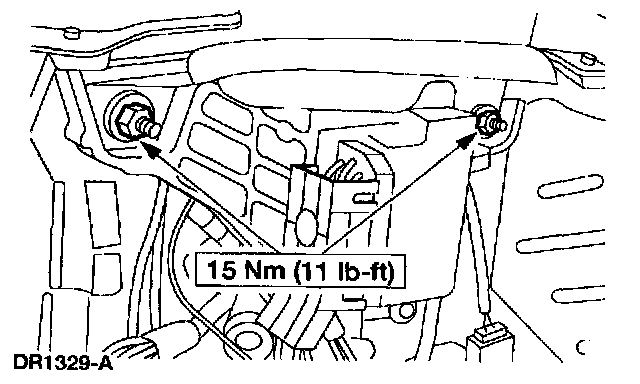 7. Loosen, but do not remove, the four steering column-to-instrument panel retaining bolts enough to remove the upper steering column shroud (two shown).
