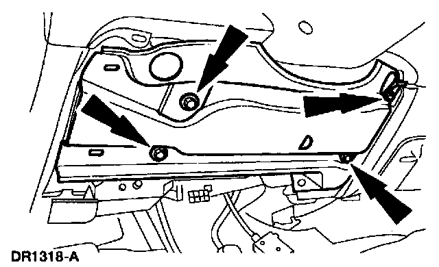 6. Remove the four retaining bolts and remove the lower steering column opening finish panel reinforcement.