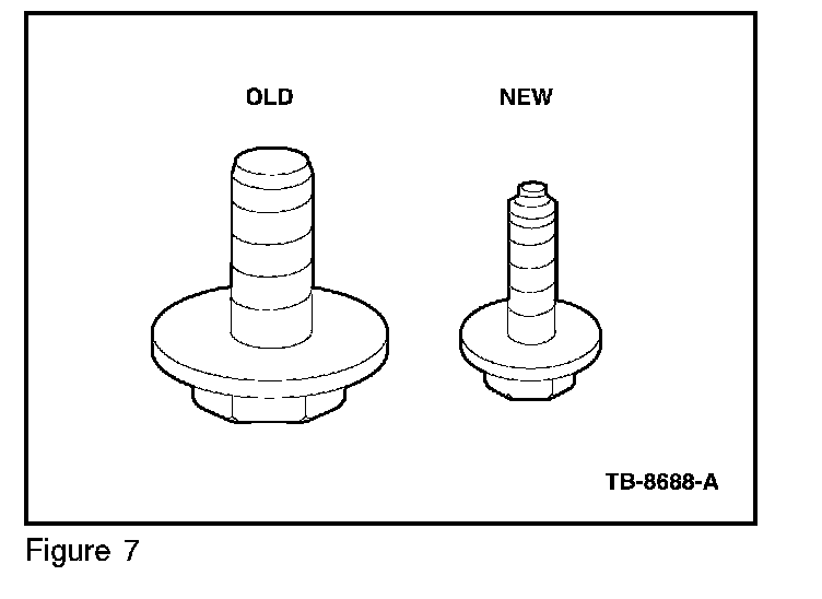 For 1997-2007 (early production) 4R44E I 5R44E and 5R55E when servicing the fluid pan gasket (7A191), the fluid pan (7A194) or the case (7005) do not mix and match old level and new level parts. The old level gasket, refer to Figure 3 (7A191) will be continued for past model applications. If replacing the older design level case, refer to Figure 1 (7005) and/or old lever fluid pan, refer to Figure 2 (7A194), ALL new components must be used. This includes the case (7005), refer to Figure 4, fluid pan (7A194), refer to Figure 5, fluid pan gasket (7A191), refer to Figure 6 and pan screws (W500212) (new torque specification - 7 lb-ft (10 N.m) refer to Figure 7.