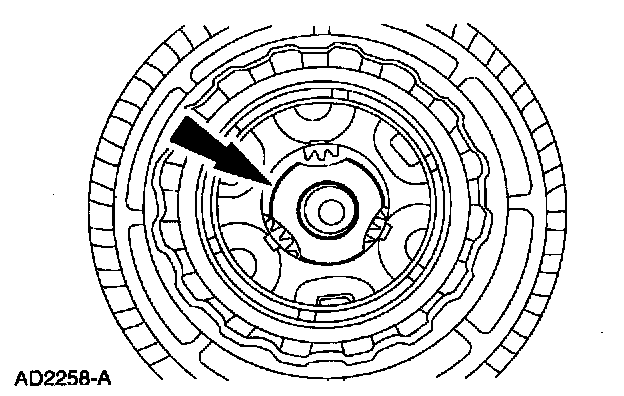 3. CAUTION: The part number that is stamped on the coast clutch adapter must face toward the front sun gear or the coast clutch assembly will not fit into the transmission.