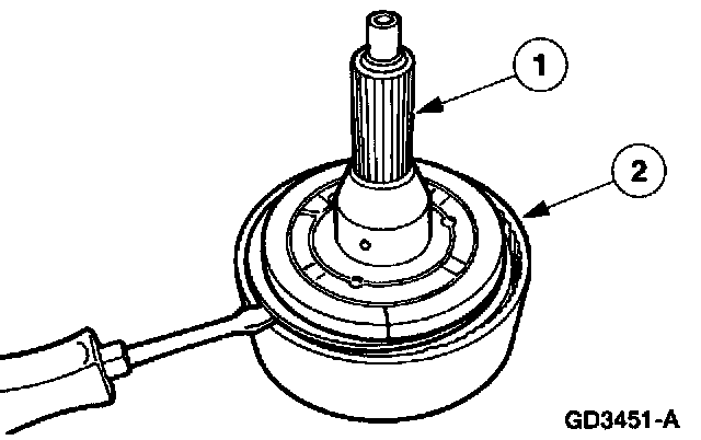 Push down on the center shaft to seat the overdrive one-way clutch into the center shaft.