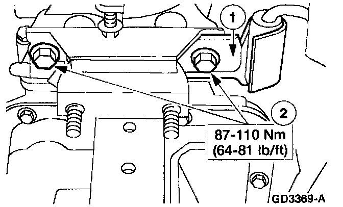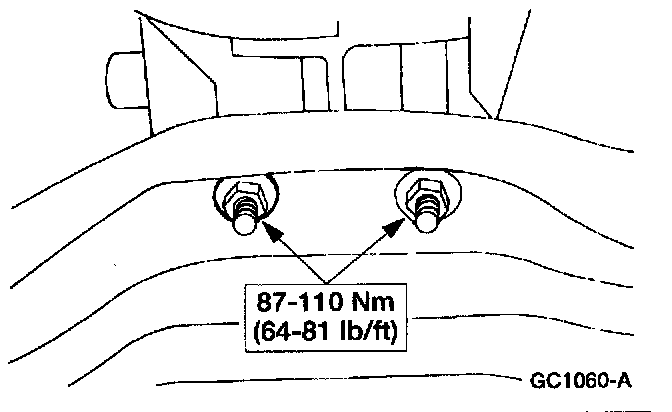 2. Install the transmission mount into the crossmember and tighten the nuts.