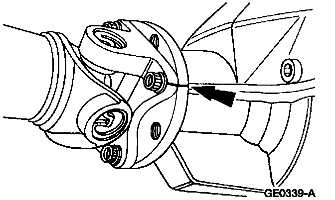 8. To maintain initial driveshaft balance, mark the driveshaft yoke and axle flange, so they may be installed in their original alignment.