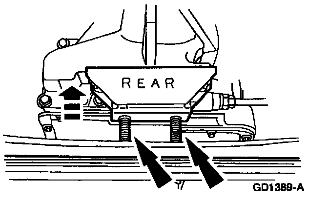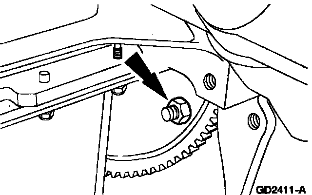 Note: If the transmission is to be removed for a period of time, support the engine with a safety stand and a wood block.