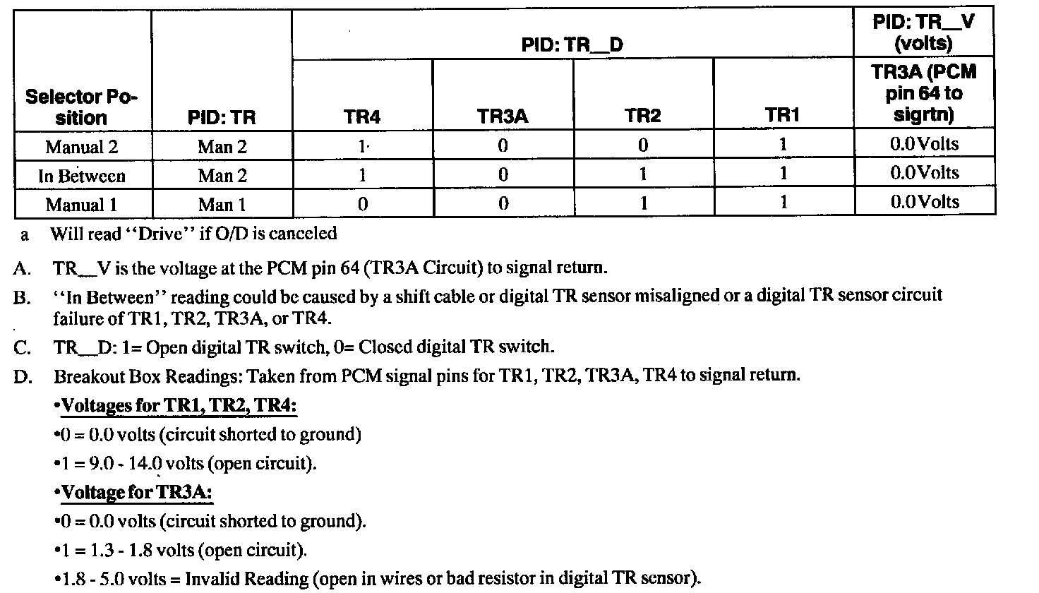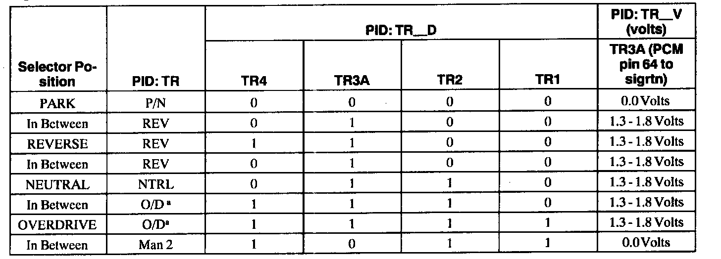 Digital Transmission Range (TR) Sensor Diagnosis Chart