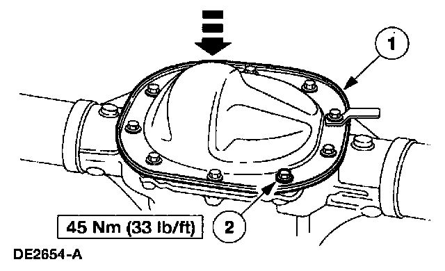 1. CAUTION: Make sure the machined surfaces on both the rear axle housing and the differential housing cover are clean and free of oil before installing the new silicone sealant. The inside of the rear axle must be covered when cleaning the machined surface to prevent contamination.