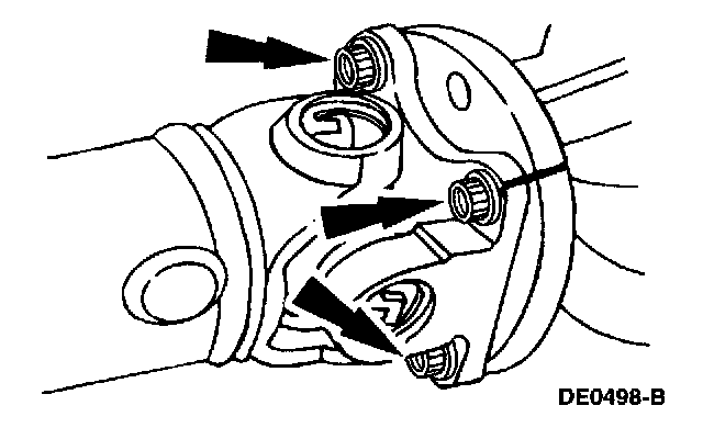 3. Remove the four driveshaft bolts and disconnect the driveshaft. Wire the driveshaft out of the way.
