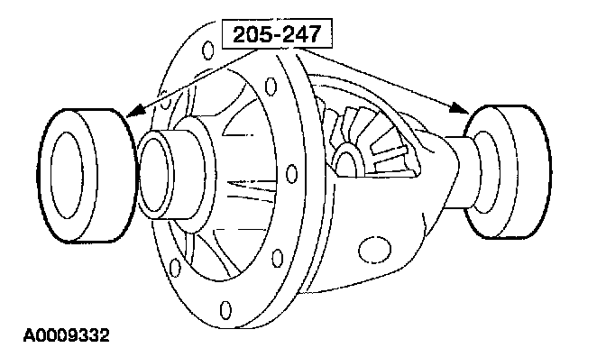 44. Using the special fools, install the axle tube bearing.