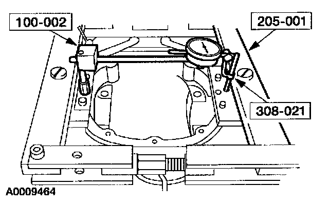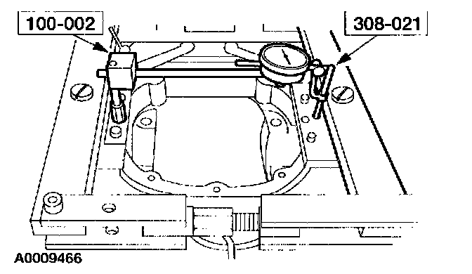 2 Force the differential case as far as possible away from the indicator. Position the indicator tip on the machined surface and adjust it to measure full travel. With force still applied, set the indicator to zero.