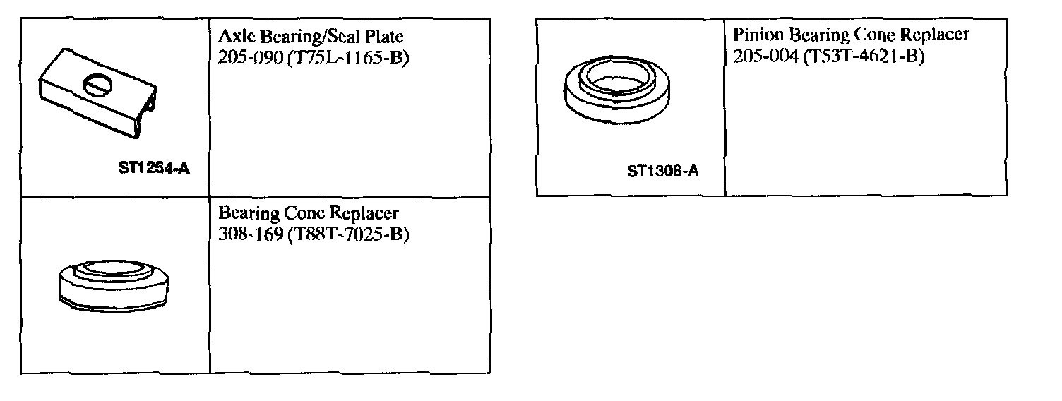 6. Use (A) Pinion Bearing Cone Replacer, (B) Bearing Cone Replacer, Axle Bearing/Seal Plate and an (C) arbor press to press the (D) center bearing into place.