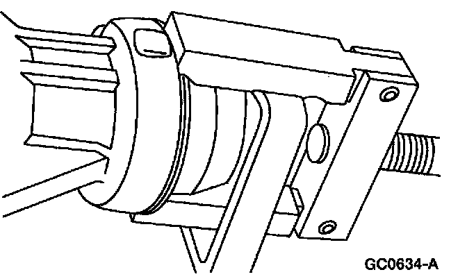 - Alternately tighten the bolts until the bearing retainer can be removed by hand.