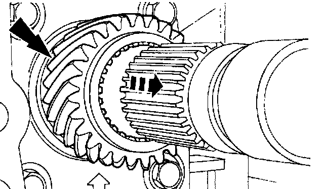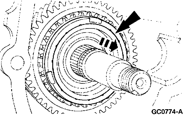 5. Slide the first/second and third/fourth synchronizer sleeves forward to lock the transmission into first and third gears.