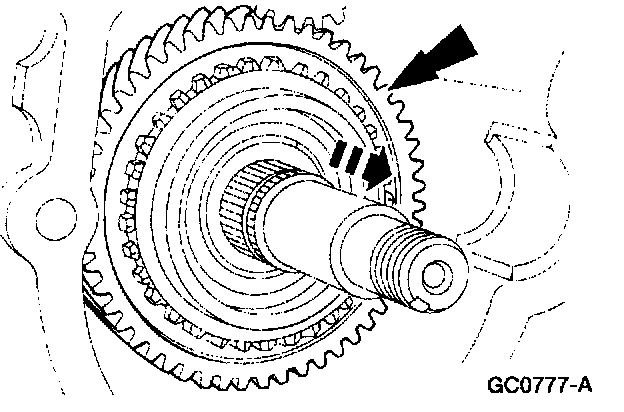 23. Remove the output shaft fifth speed gear.