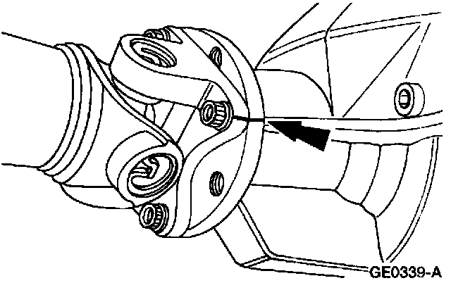 7. Note: To maintain initial driveshaft balance, mark the driveshaft centering socket yoke and rear axle universal joint flange so they may be installed in their original positions.