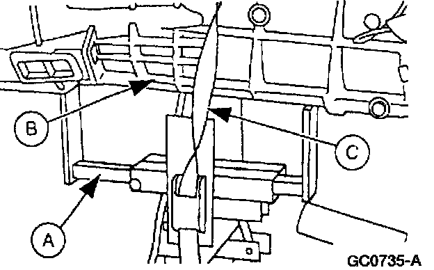 12. Position (A) Hi-Lift Jack under the (B) transmission.