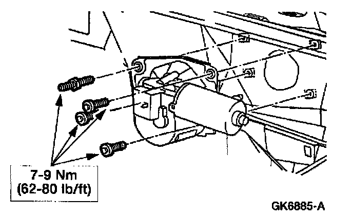 REMOVALCAUTION: The internal permanent magnets used in the windshield wiper motor are made of a glass-like material. To avoid damaging the magnets, do not strike the motor with a hammer or any other object.