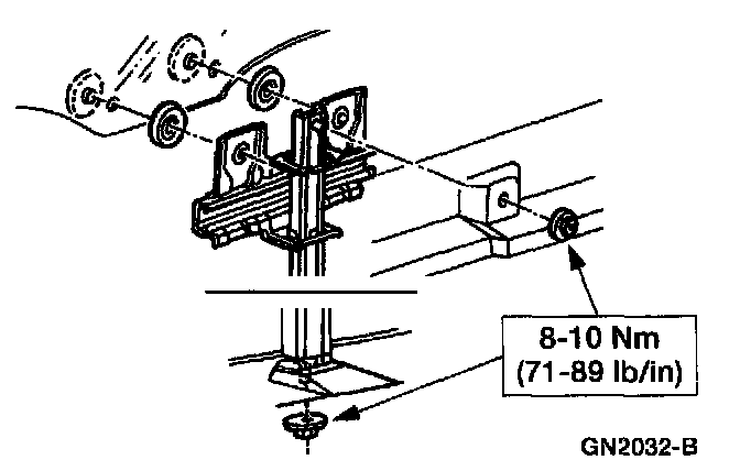 2. Remove the door glass center run retainer nuts.