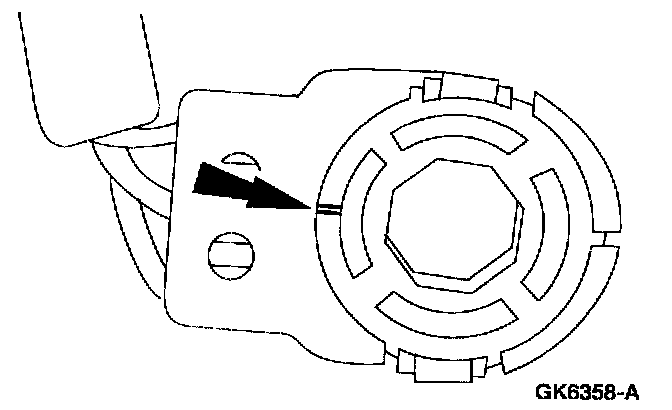 NOTE: The liftgate lock cylinder disarm switch locator mark must be positioned towards the harness side of the switch prior to installation.