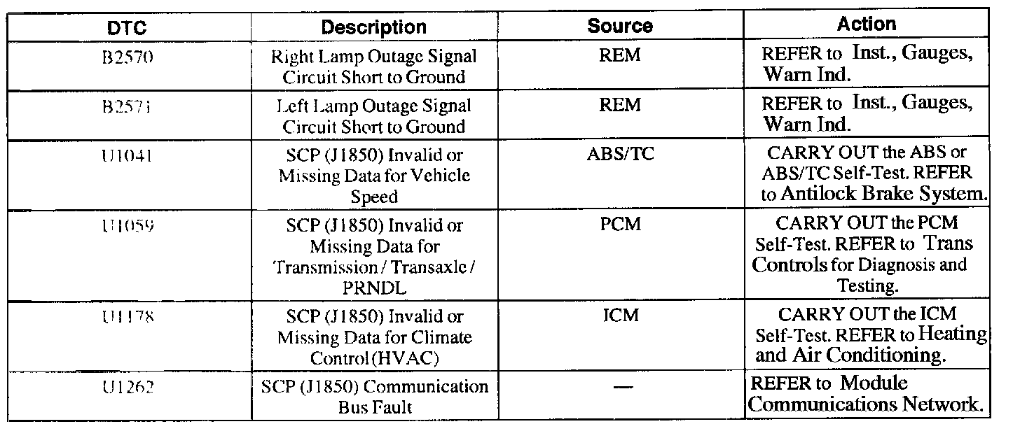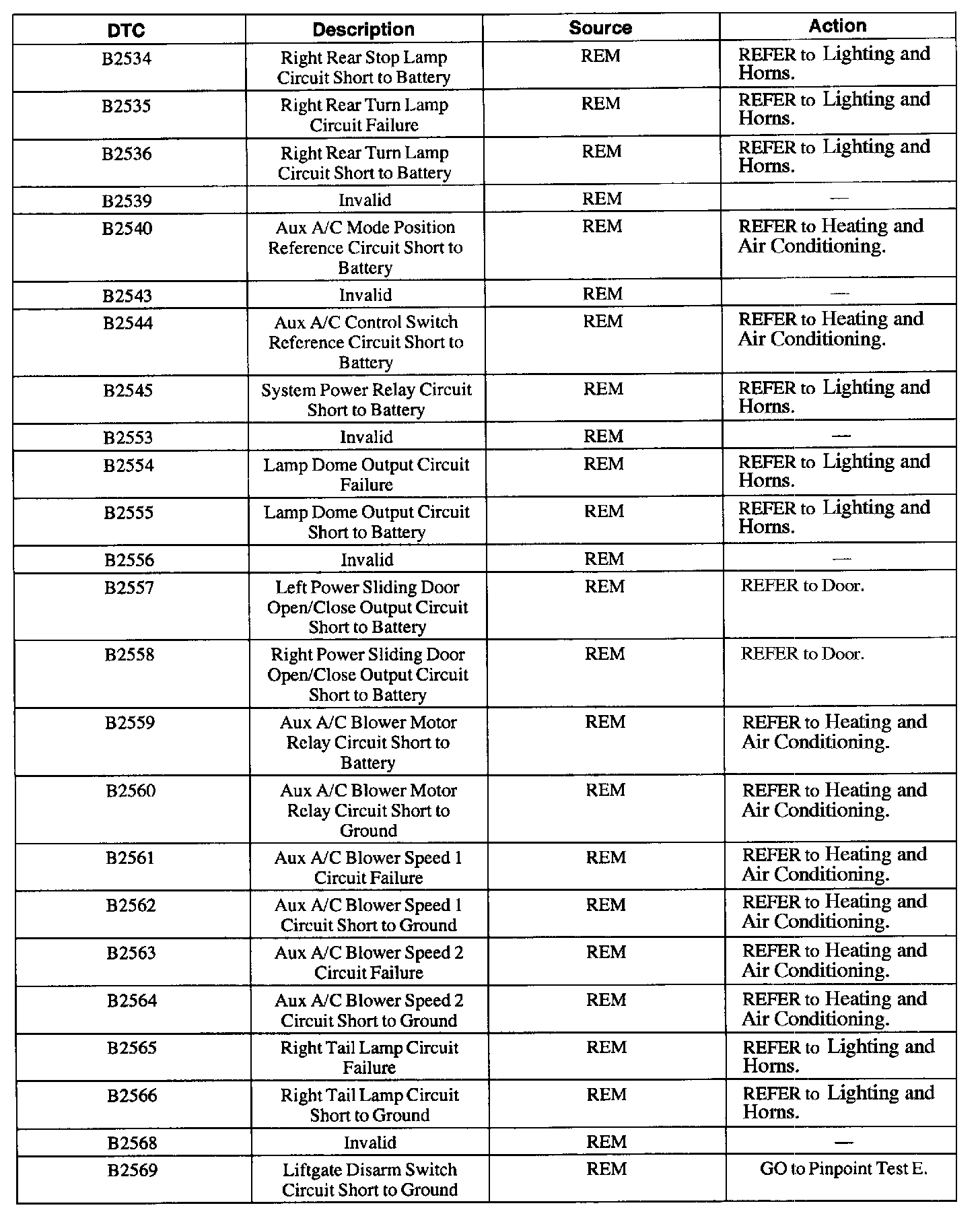 REM Diagnostic Trouble Code (DTC) Index