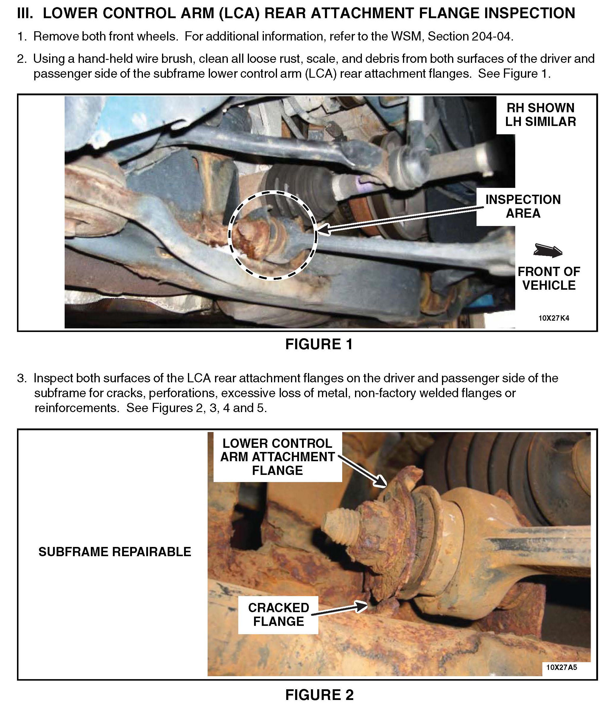 III. Lower Control Arm (LCA) Rear Attachment Flange Inspection