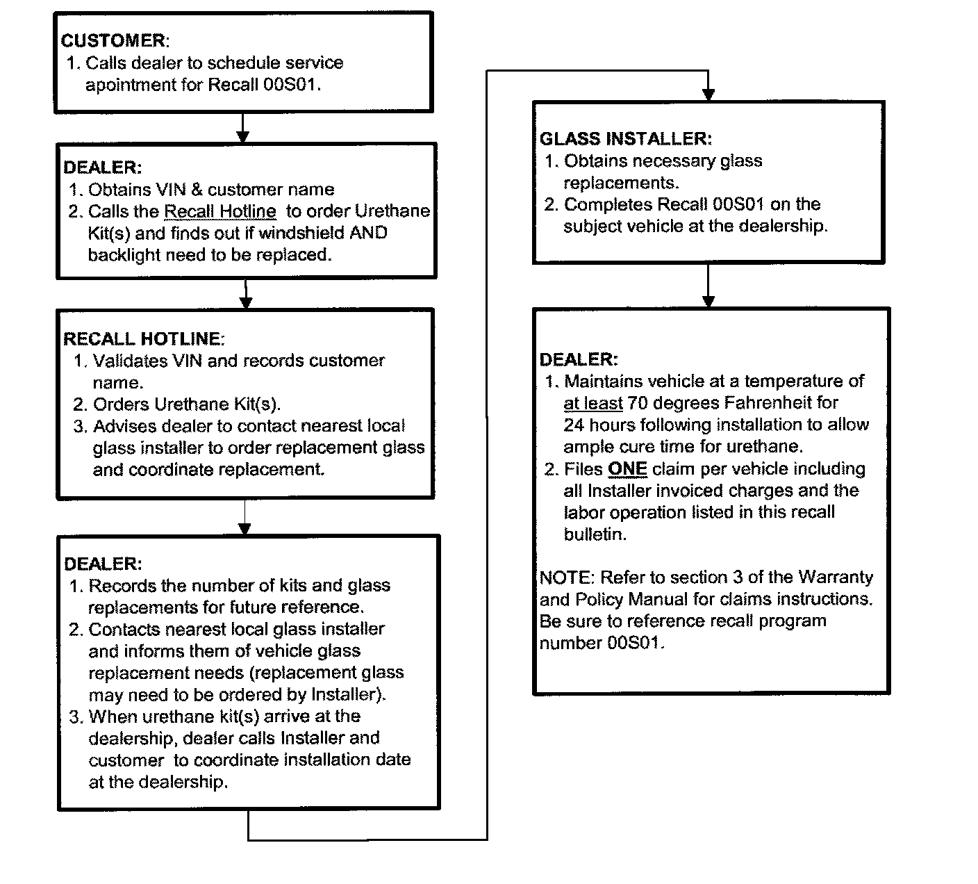 REVISED GLASS INSTALLATION PROCEDURE FOR SAFETY RECALL 00S01: