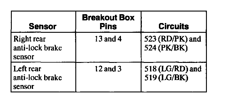 Monitor the resistance between suspect anti-lock brake sensor pins (component side) while wiggling the electrical connector.