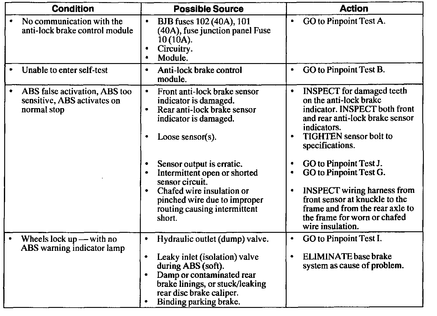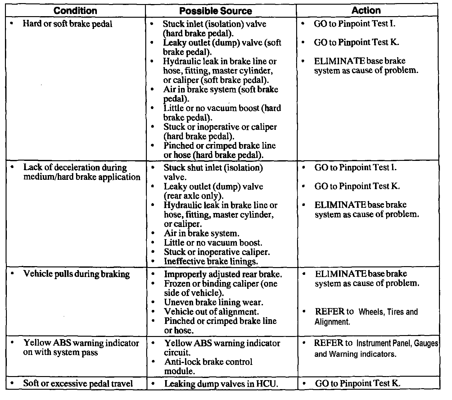 Note: Failure of a mechanical brake component may not cause the yellow ABS warning indicator to illuminate or a DTC to be stored. The Symptom Chart is a starting point to begin diagnosis of these concerns.