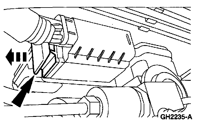 6. Lift the bracket hooks from the frame and lower the HCU to access the anti-lock brake module.