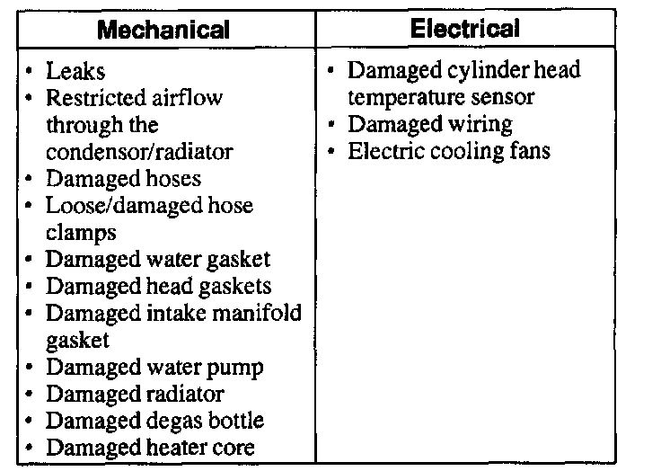 2. Inspect to determine if any of the mechanical or electrical concerns apply.