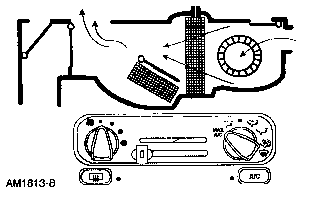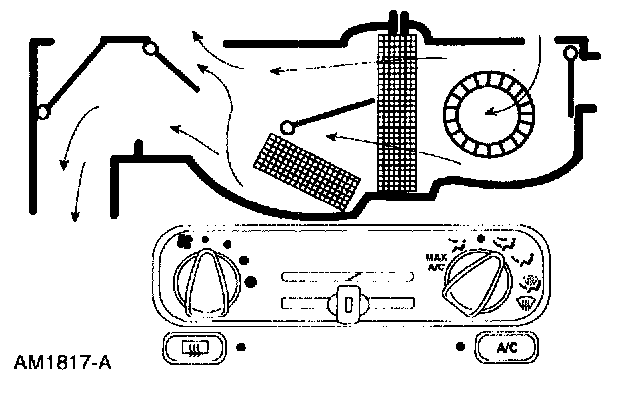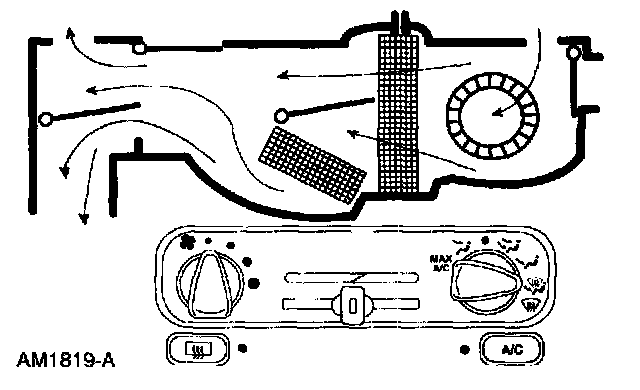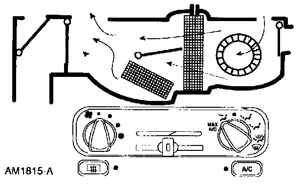 ^ The temperature control knob setting will determine the amount of air that is directed through the heater core and the amount that bypasses the heater core.