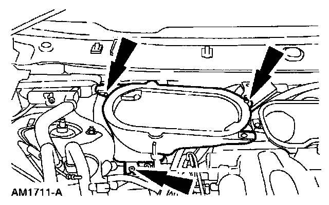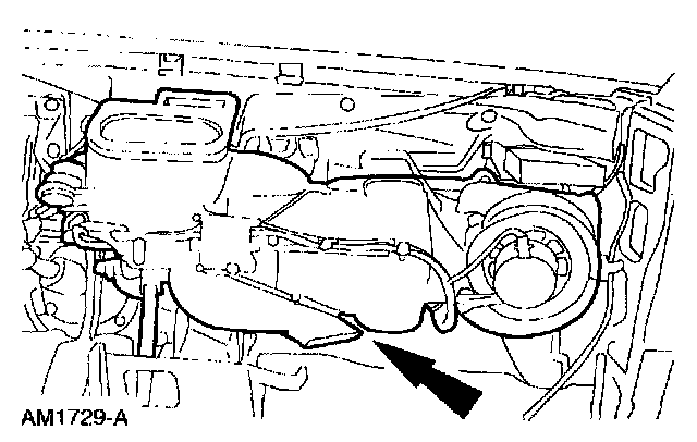 CAUTION: Do not spill coolant or refrigerant oil into the vehicle when removing the evaporator housing.