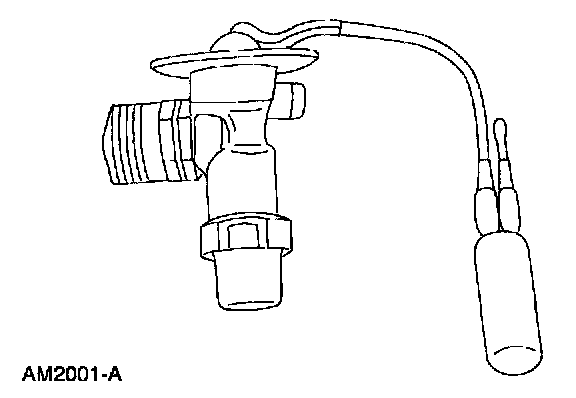 The temperature sensing bulb measures the temperature of the refrigerant in the suction line and transmits it to the A/C evaporator expansion valve. This temperature variation regulates the refrigerant flow to the auxiliary A/C evaporator core.