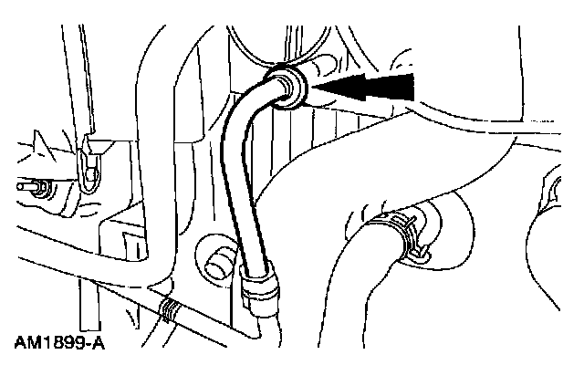 6. Disconnect the condenser to evaporator line spring lock coupling from the A/C evaporator core.