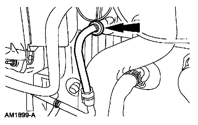 4. Disconnect the condenser to evaporator line spring lock coupling from the A/C evaporator core.
