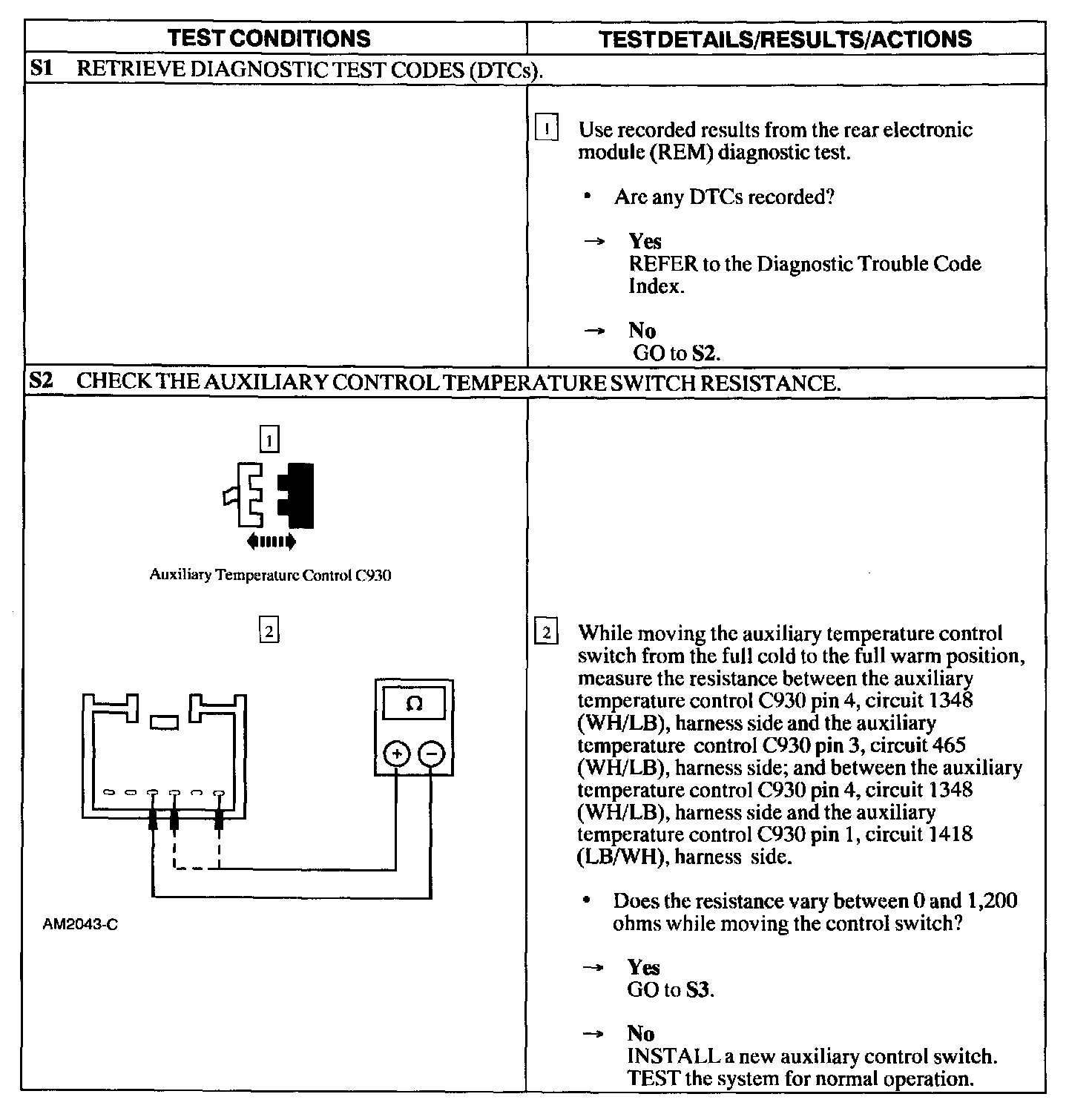 Test S: Panel/Floor & Cool/Warm Controls Inop/Not Operate Correct W/Rear Aux Controls
