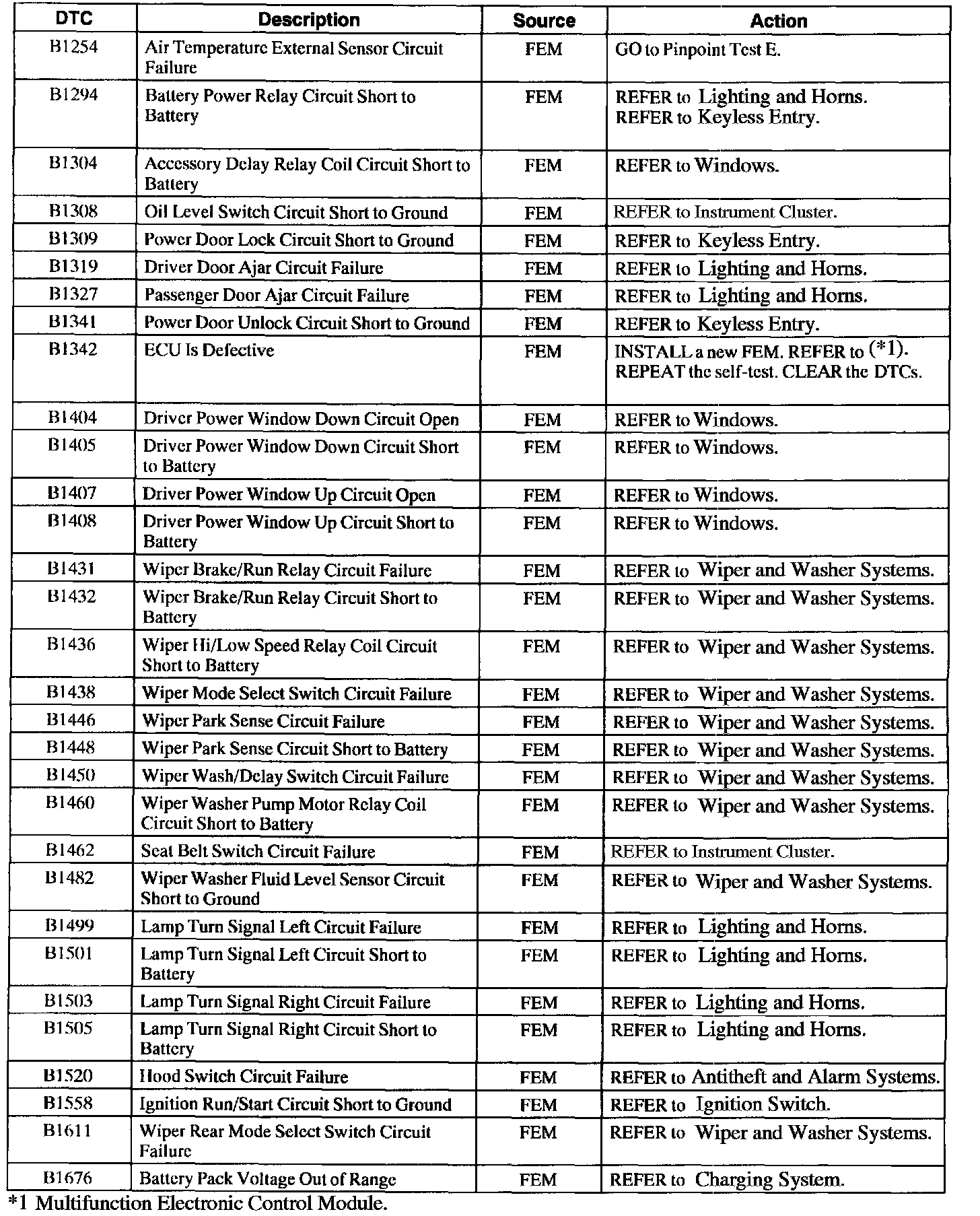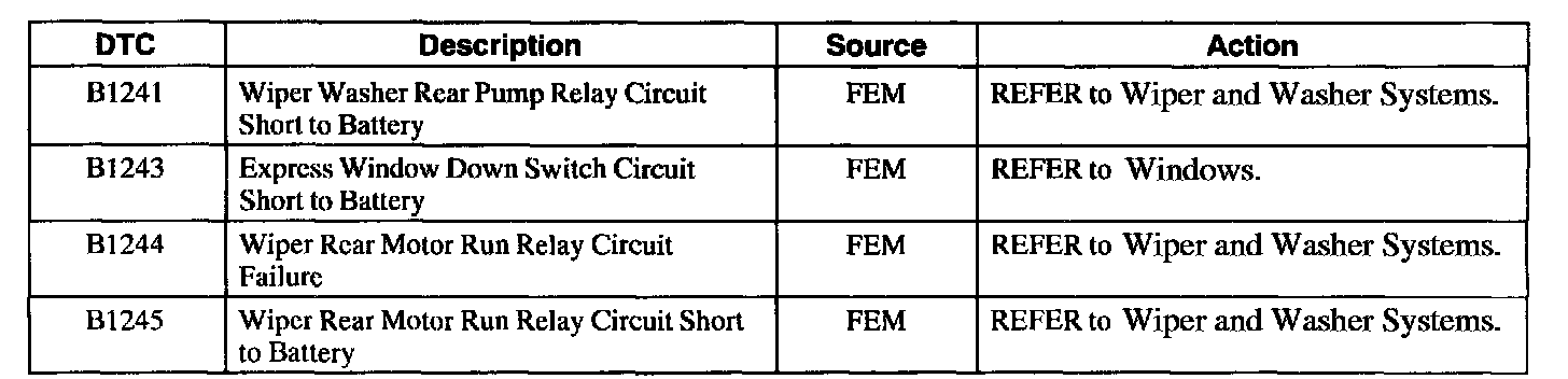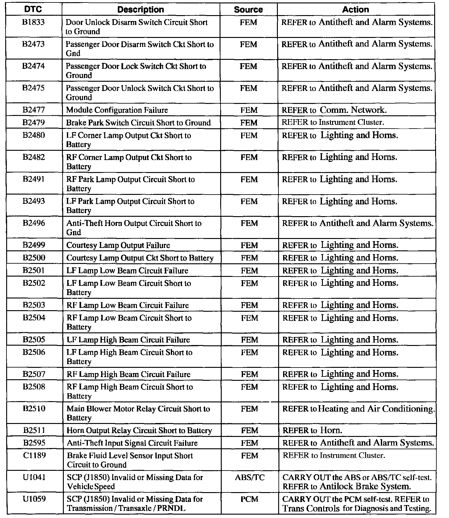 Front Electronic Module Diagnostic Trouble Code (DTC) Index