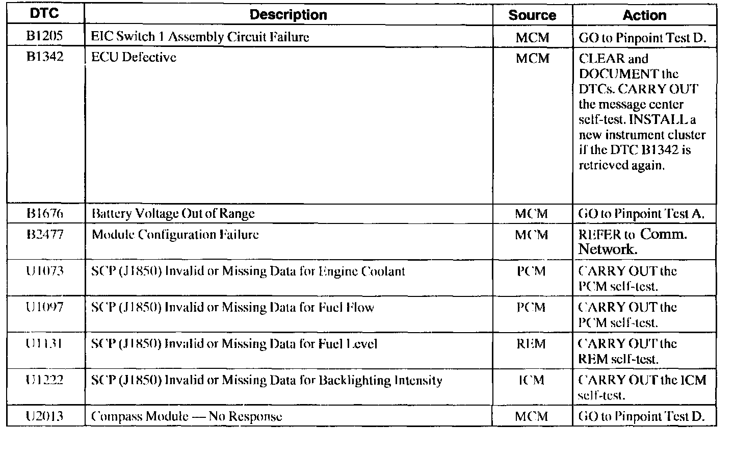 Message Center Module Diagnostic Trouble Code (DTC) Index
