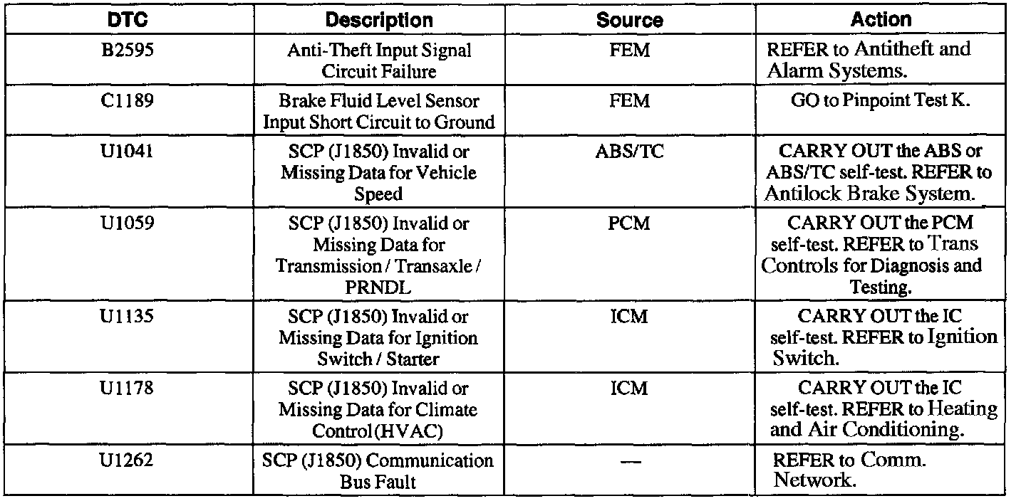 Trouble Code Diagnostic Charts - Instrument Cluster