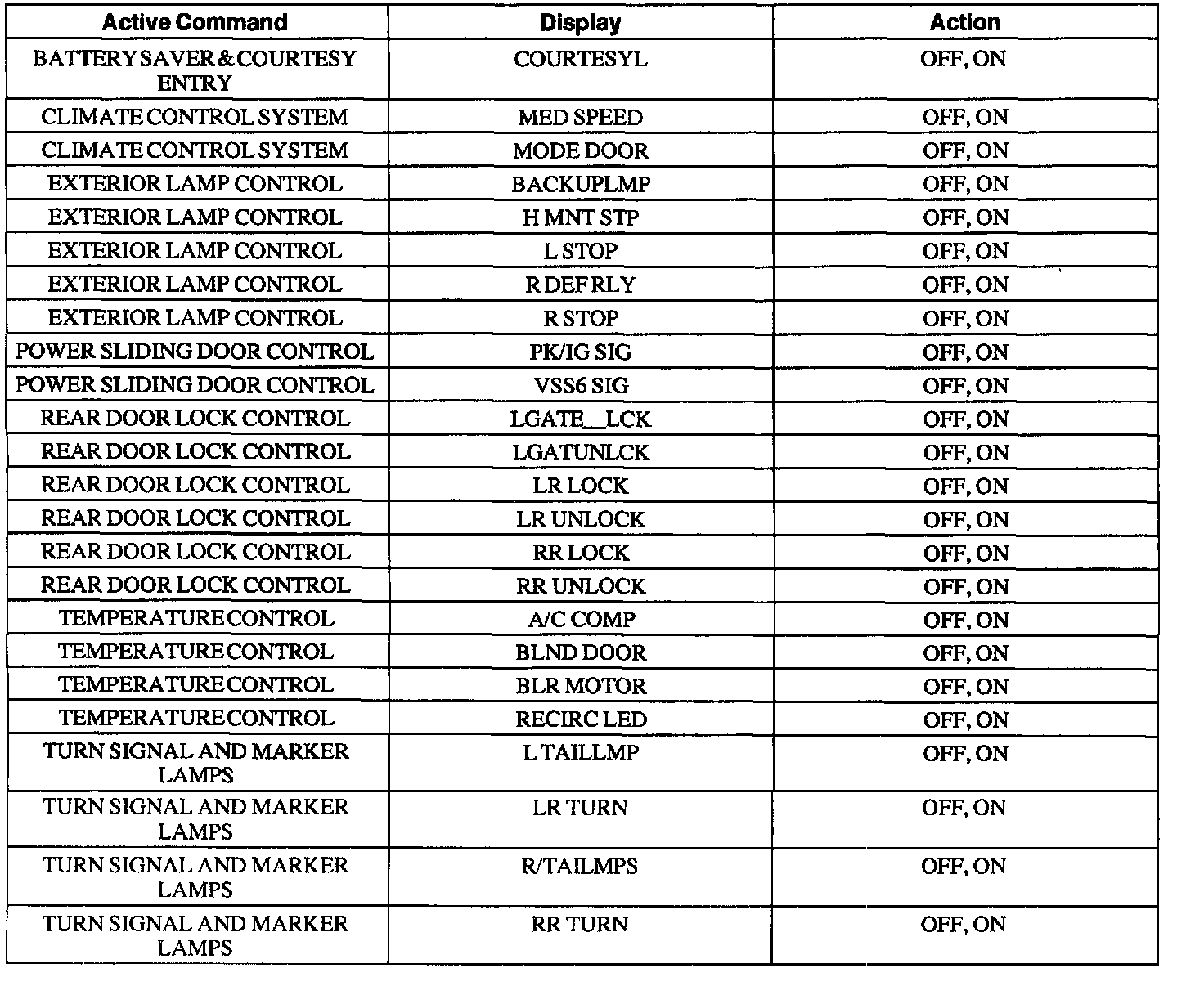 Rear Electronic Module Active Command Index
